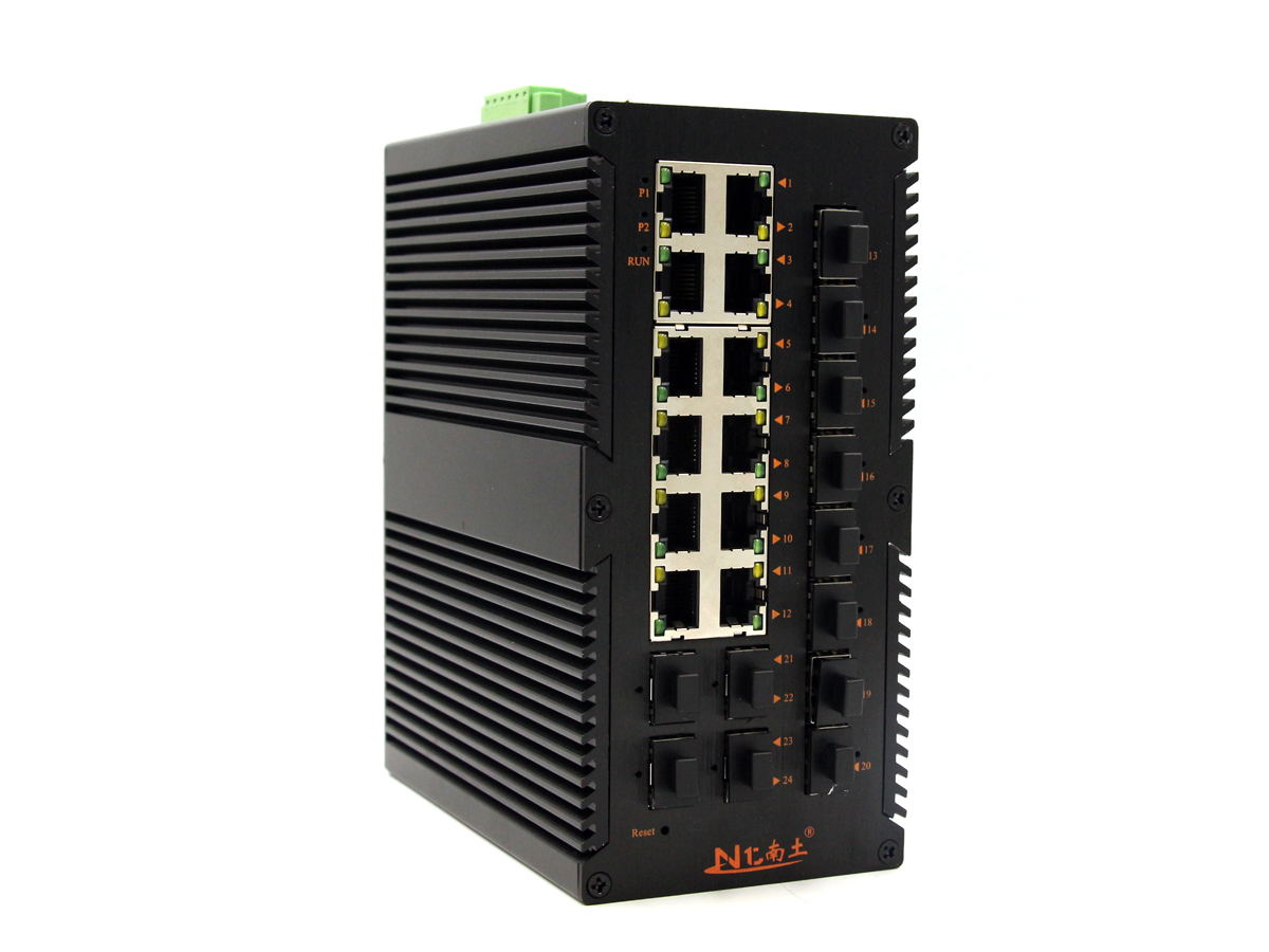 工業級(NT品牌)千兆網管12個SFP光口12個電口,導軌式-DC12~52V供電-寬溫(-40℃-85℃)-L3-支持環網(STP/RSTP/MSTP/ERPS)-WEB/CLI管理-SNMP-VLAN |