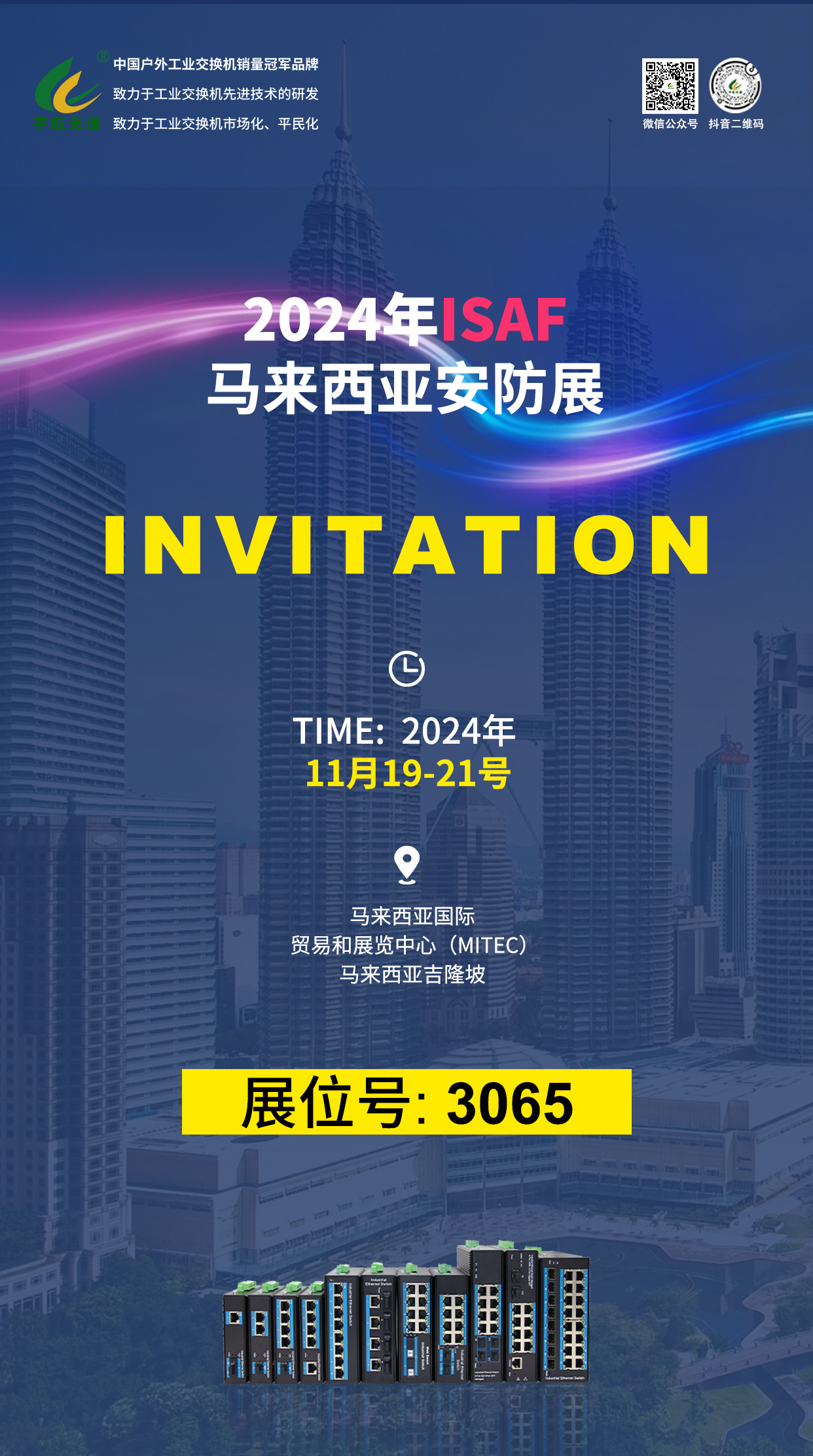露花啼晚菊,風葉舞高梧,11月,宇航工業交換機繼續前行,將分別亮相2024年ISAF馬來西亞安防展、第二十六屆中國國際高新技術成果交易會,還將會在南寧、昆明、福州、深圳等地舉辦2024宇航工業交換機千城行產品技術交流大會等一系列精彩的活動,誠邀您一同參與!