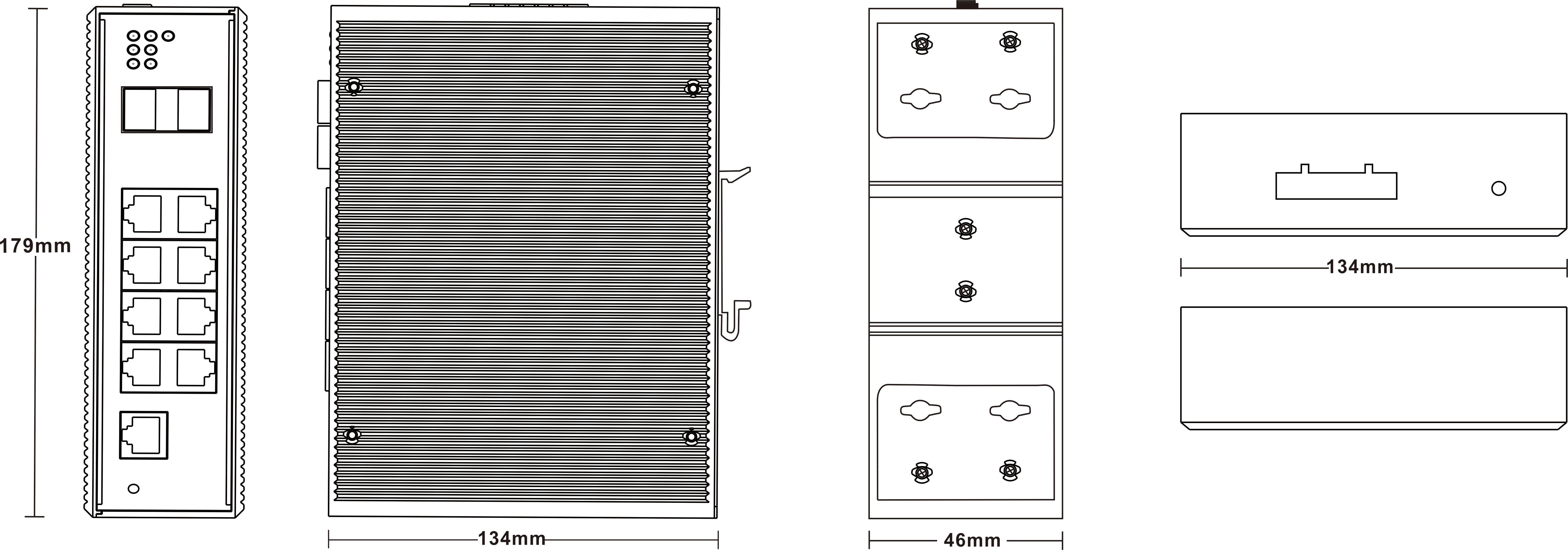 外殼:金屬材質 安裝:DIN 卡軌式,壁掛式安裝 重量:0.45Kg 尺寸 :120x 95x 40.5mm (長 x 寬 x 高) |