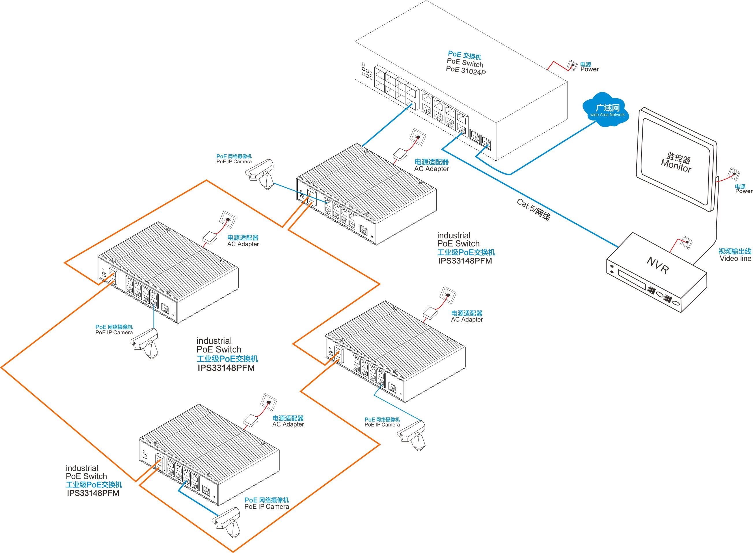 | YH200-05F | 1路百兆上聯電口+4路百兆下聯電口、導軌式、DC12~52V供電 |