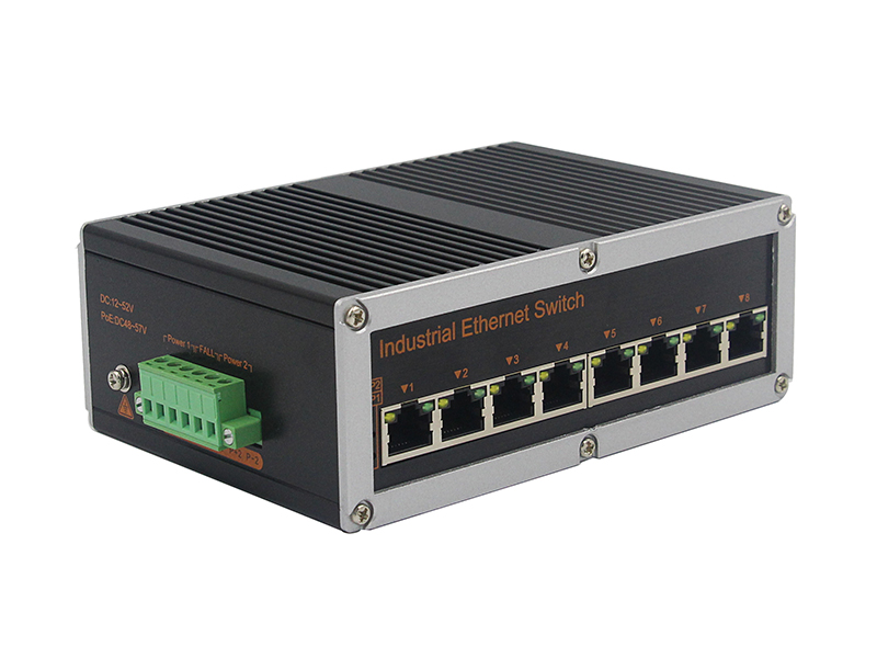百兆8電工業級以太網交換機產品符合 FCC、CE、ROHS 標準。此系列交換機具有 -40℃~ 85℃的工作溫度, 具有超強的堅固度能適應各種嚴苛環境,也可以非常方便的安置在空間緊湊的控制箱中。導軌式的安裝特性、寬溫操作及擁有 IP40 防護等級的外殼及 LED 指示燈,使之成為一個即插即用的工業級設備,為用戶的以太網設備聯網提供可靠、便捷的解決方案。