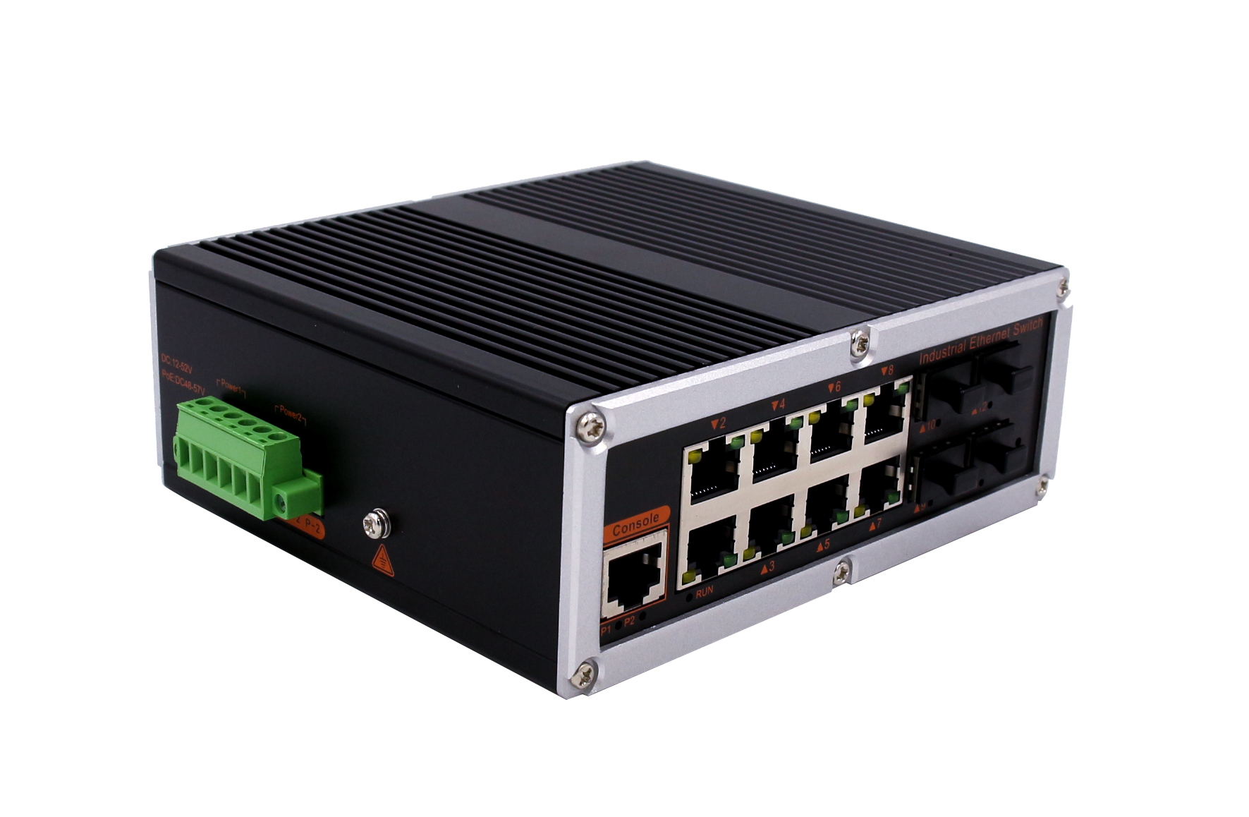 4個千兆光+8個千兆電、SFP接口(不含光模塊)、導軌式、DC12-52V供電 |